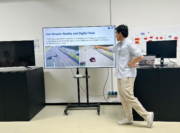 在慕尼黑工业大学Alois Knoll教授领衔的机器人、人工智能和实时系统研究所,研学团深入考察了该所的前沿研究成果。研究所成员姚相同博士、Nenad Petrovic博士后及刘明宇博士展示了实验室代表性设备,介绍了“面向汽车软件与系统开发的AI智能体”,并分享了“路端数字孪生”相关项目。