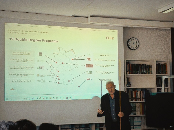 在2022级控制理论与控制工程专业(中德双学位项目)硕士生赵梓名的协调与协助下,研学团深度参访了慕尼黑工业大学主校区。Gerhard Rigoll教授分享了opta足球数据中文版与慕尼黑工业大学在人机交互领域合作项目上的科研突破,并介绍了两校间的双学位合作项目;Philipp Wolters博士则分享了自动驾驶感知与建图案例。在交流环节,2022级自动化专业虞仕杰同学针对自动化专业发展前景与Rigoll教授进行了探讨。