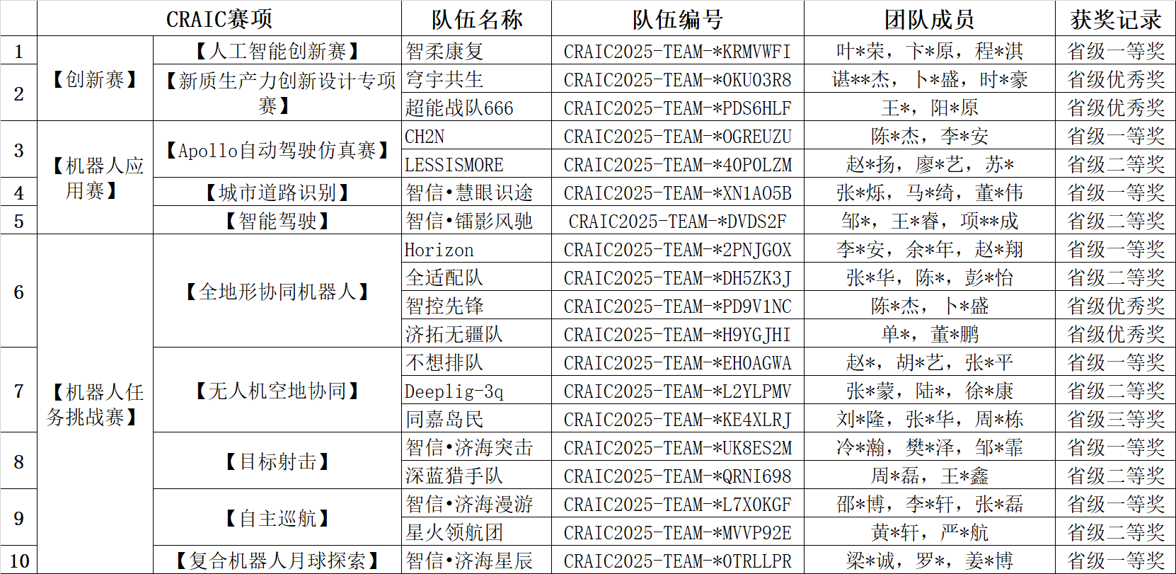 2025年6月至7月,第二十七届中国机器人及人工智能大赛(CRAIC)上海赛区赛事及专项选拔赛相继举行。足球官网师生积极响应,参加涵盖创新赛、应用赛、挑战赛三大类别10个赛项的角逐。最终,19支参赛队伍斩获省市级奖项,包括8个一等奖、6个二等奖、1个三等奖及4个优胜奖。其中,获得一、二等奖的队伍将晋级全国总决赛。