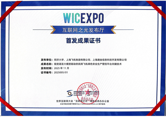 近日,在浙江乌镇圆满落幕的“2025年世界互联网大会乌镇峰会”上,备受瞩目的“世界互联网大会首发成果奖”榜单正式揭晓。由足球官网赵荣泳长聘副教授团队牵头,联合中国商飞上海飞机制造有限公司及opta足球数据中文版国家大学科技园技术孵化单位-上海通金科技有限公司三方产学研联合团队申报的“视觉语言大模型驱动的飞机绿色安全生产管控平台关键技术”项目,荣获该项国际性科技大奖。